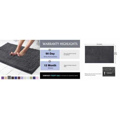 Itsoft Plush Microfiber Long Runner Non Slip Soft Bathroom Rug Absorbent Machine Washable Chenille Bath Mat