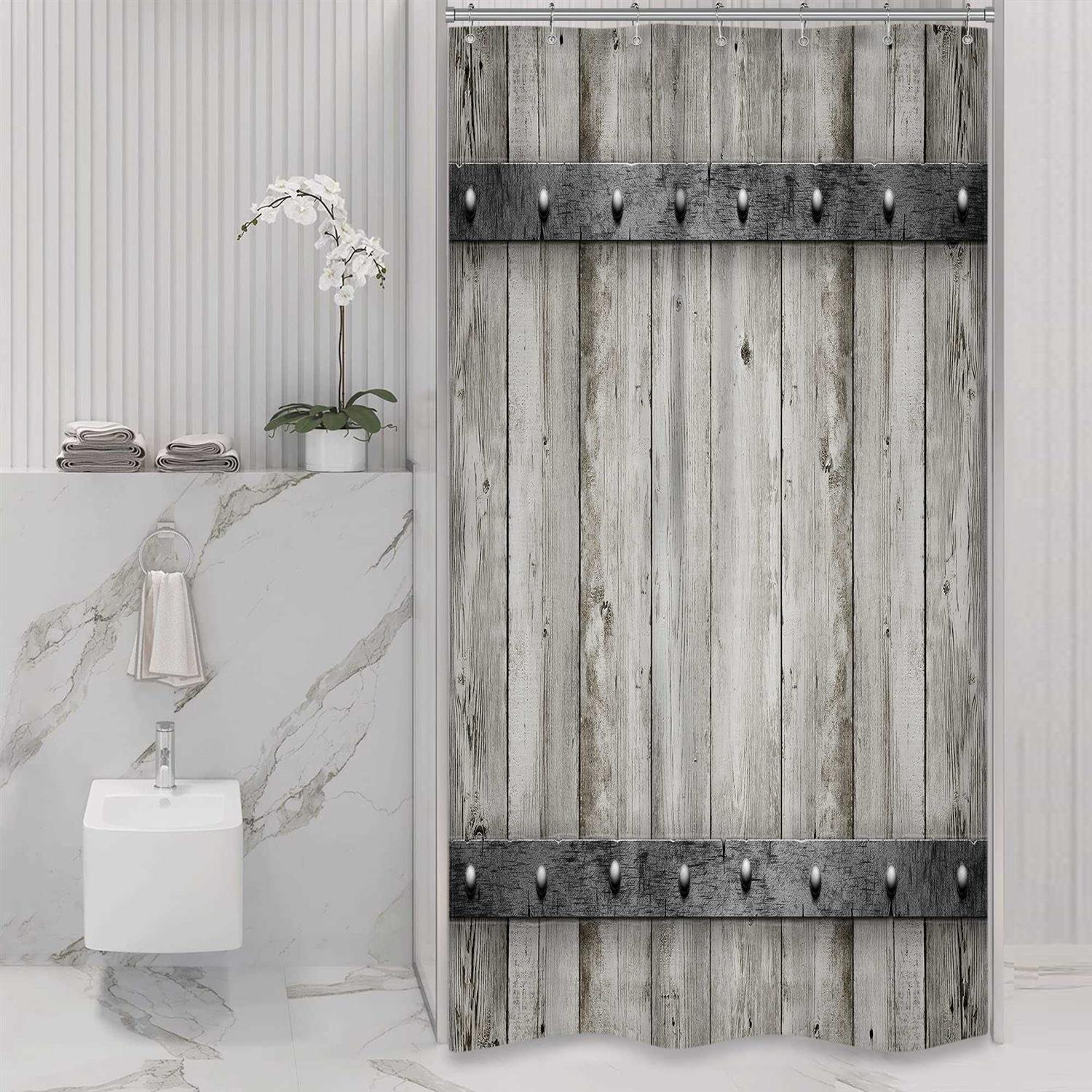 Riyidecor Rustic Small Stall Barn Door Shower Curtain 36Wx72H Farmhouse Wood Plank Wooden Country Texture Bathroom Decor Fabric Polyester Waterproof