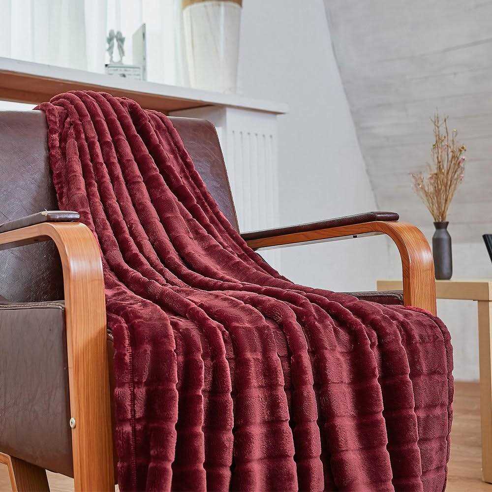 Bertte 330 GSM Lightweight Fluffy Cozy Luxury Decorative Stripe Bed Couch Plush Throw Super Soft Fuzzy Warm Blanket