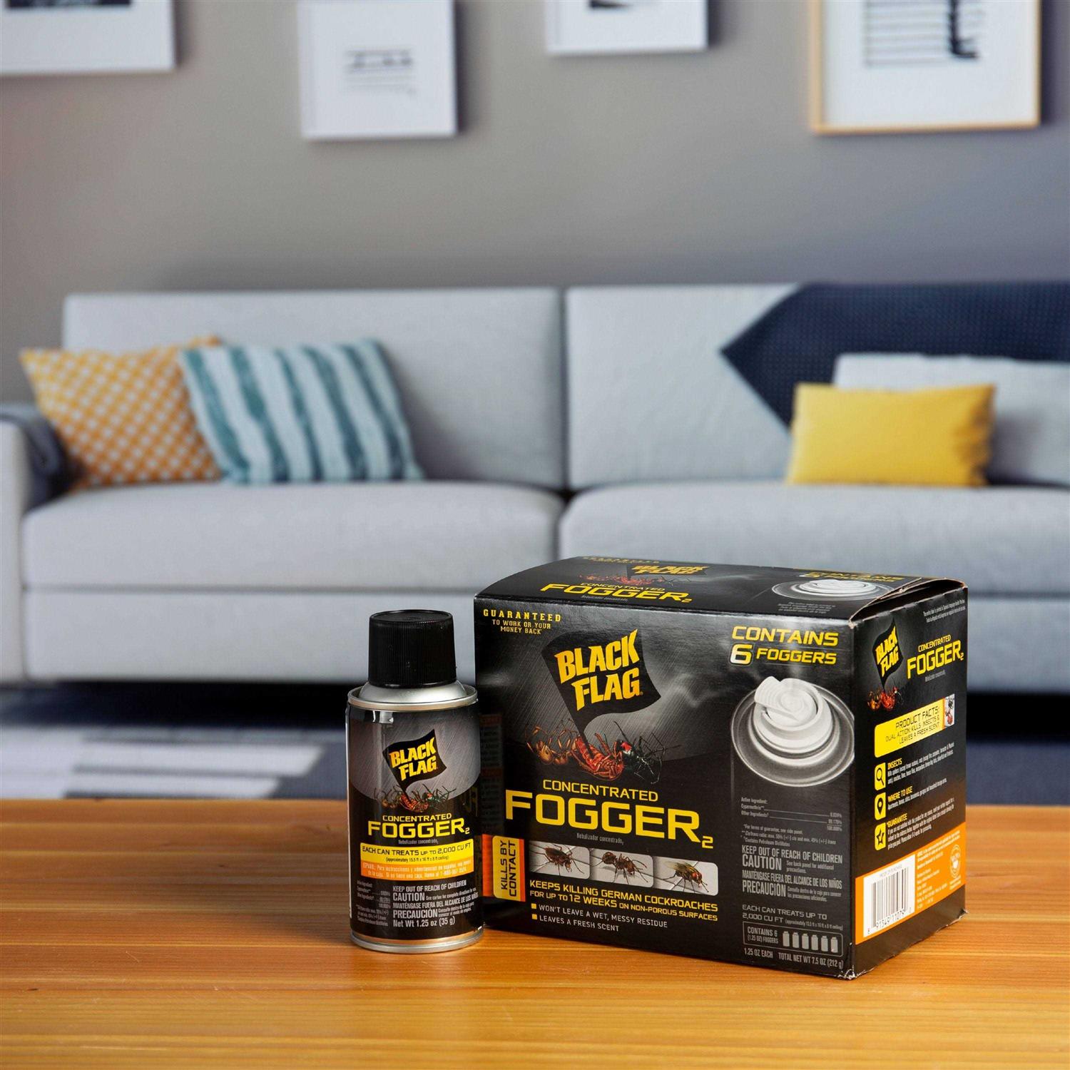 Insects invading your corner of the world. Whatever insect you’re fighting, Black Flag products are dedicated to providing the tools you need to regain control. Black Flag products don’t mess around. Our indoor/outdoor pest arsenal has been arming homeowners in the battles against invading bugs for more years than any other brand. With quick, decisive formulas that act fast and never back down, Black Flag insect control gets the job done and take no prisoners. The Black Flag Concentrated Fogger is a dual action fogger, because it penetrates cracks and crevices to kill bugs where they live and breed and leaves a fresh scent. It kills the following insects by contact: spider (except brown recluse), ants (except fire, carpenter, harvester and Pharaoh ants), roaches, fleas, house flies, mosquitoes, brown dog ticks, silverfish and firebrats. It is perfect to use in apartments, attics, basements, garages and household storage areas. It continues killing German cockroaches for up to 12-weeks on non-porous surfaces. Each can treats up to 2,000 cu. ft. (approximately 15.5 ft. x 16 ft. x 8 ft. ceilings).