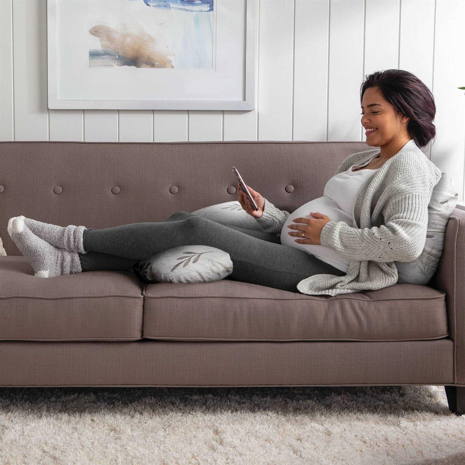 Exclusively at Target. A relaxing neutral leaf pattern on soft breathable fabric. For the mama looking for all the plush comfort she can get. The Total Body Pillow gives pregnancy and postpartum support from head to toe. The full body design supports your bump hips lower back and shoulders in one. Its contoured design supports you exactly where you need it. Angled to wrap around your head and neck to take pressure off your shoulders. Curved to match your natural leg line when side sleeping the Total Body Pillow pads your knees and aligns your hips to help alleviate hip and lower back discomfort. The pillows center is designed to cradle your bump as you and baby grow. Great for sleeping and for getting comfy while lounging at home. The easy wrap design adds back and knee support while lounging on the sofa or sitting up in your bed to read or create your online baby registry. The soft breathable pillow cover provides cooling comfort. The pillow and the pillow cover are both machine washable so it is easy to clean. The pillow is large enough to support your whole body while still fitting in most washing machines. The Boppy Total Body Pregnancy Pillow is part of a full line of Boppy maternity pillows designed to support the varying needs of pregnancy. All prenatal pillows support pre and post birth and help you get comfortable while sitting or sleeping. Eboni S. Hollier MD FAAP Mommy MD says – Because of its length and contour it efficiently supports many physical issues commonly experienced during pregnancy including back pain and increased pelvic pressure.