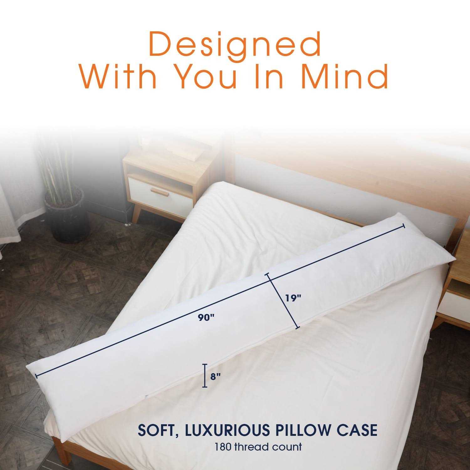 This high quality Cheer Collection down alternative body pillow will indulge you with incredible warmth, loft, comfort and coziness. This extraordinary pillow surrounds you in a cocoon of support, relieving pressure to many areas of the body, which drastically reduces your need to toss and turn. This Body Pillow is a full-body solution for everyne and will support your back preventing sciatica and lower back pain. It also tucks between your knees for help with back pain and temperature control, while cradling your belly. The Pillow comes with a Zippered Cover.