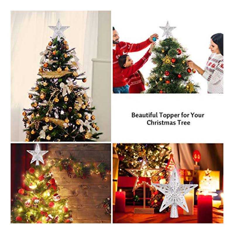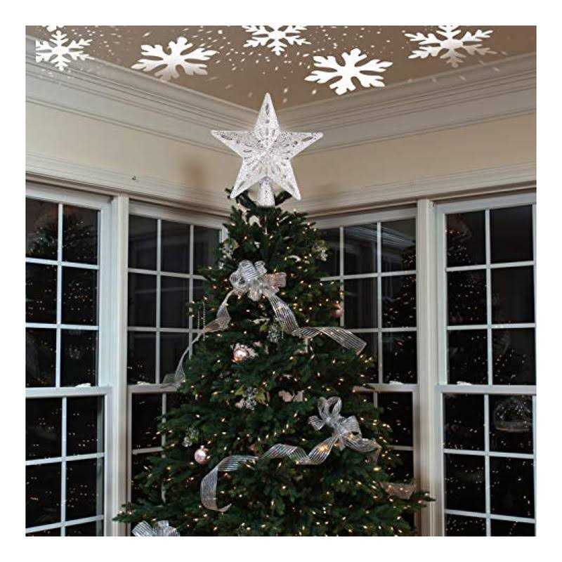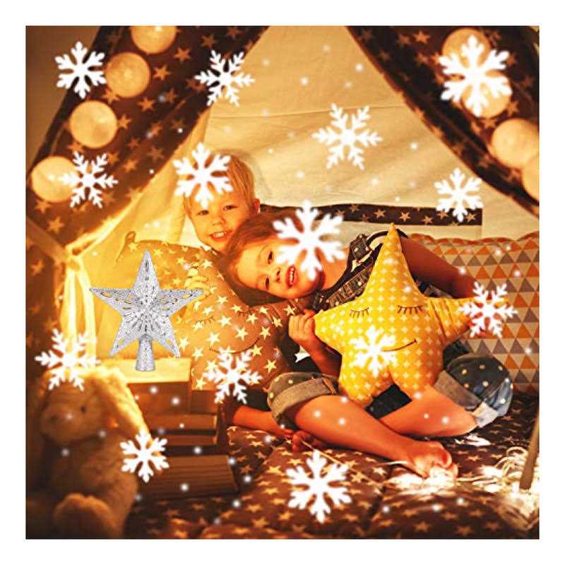 DG-Direct Christmas Tree Topper Lighted Star,3D Hollow Sparkling Star Christmas Tree Topper with Rotating Magic Cool White Snowflake