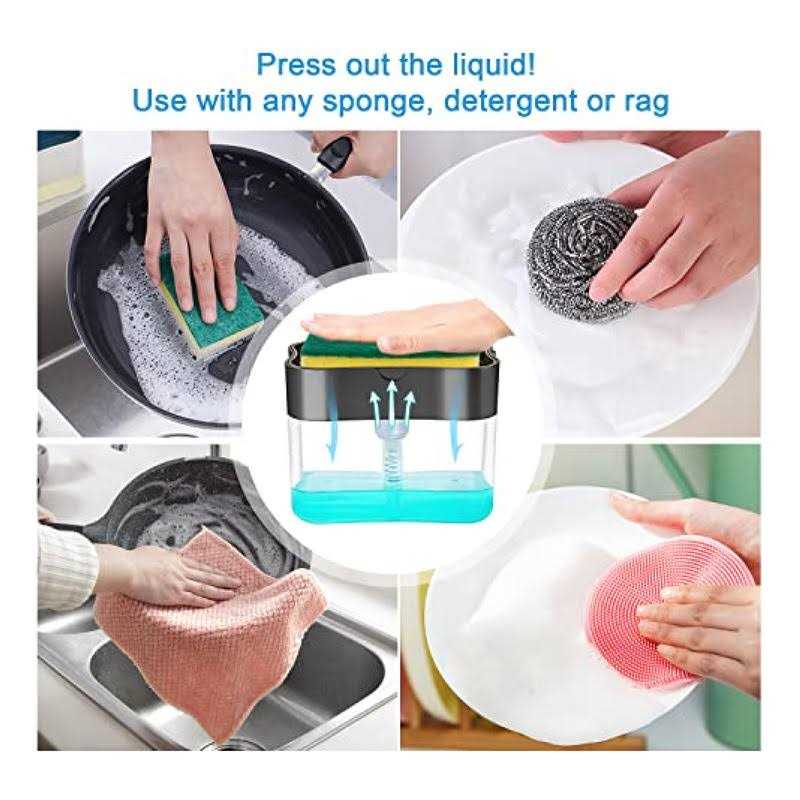 Brand: Mgufrt Color: A-dark Gray Features: 【Durable Soap Dispenser Sponge Holder】 : Kitchen soap dispenser use innovative design,high quality, long lasting and rustproof that is different from other traditional soap dispensers. Soap pump dispenser and sponge holder are made of food grade transparent ABS+PC plastic which is durable. Soap dispenser pump able to press more than 60000 times and perfectly matches soap dispense kitchen. 【2-IN1 Dish Soap Dispenser + Caddy】: Hand soap dispenser only need 1 hand operation for function, press the dish soap dispenser caddy’s top plate down with one hand and dispense the soap directly onto the sponge. Sink dispensers with caddy holds sponges, scouring pads, rags and scrubbers all in one place also while keeping your kitchen counter dry. 【Large Capacity, Precise & Effortless Dispensing】: Soap dispenser for kitchen sink has a large capacity of 13 ounces so that you don’t need to refill it frequently. And works with any kind of liquid dish soaps. Dish liquid soap dispenser measurements: 5.51x 3.35 x 4.33 inches. 【Save soap】: Dish soap pump dispenser sponge holder are very powerful of function, dispense the perfect amount of soap onto the sponge every time, extremely easy to use. Saves so much soap, compared to just putting the soap on the sponge to do the dishes. 【 Save Money, Space & Time】: Dishwashing soap dispenser can help reduce the time you spend at the kitchen sink. And effortless 1-hand dispensing operation allows you to wash dishes faster while save the sink space above to make mom’s kitchen dish washing more effect and convenient. Great Gift idea choice for your wife, even can be gift choice for your kids,make your kids wash dishes with a lot of fun. Details: Cleaning dishes is about to get a whole lot faster with kitchen soap pump & sponge caddy. Reason for choice: Using the highest quality components: Dishwashing soap dispenser is made of the highest quality ABS+PC plastic, with instant Refill, Durable, Rustproof. 2-in-1dishwasher soap dispenser: Designed to be superior, unlike other traditional dispensers, sink dispenser withattached caddy holds sponges, scrubbers, rags, scouring pads in one convenient place while keeping water off of kitchen counters. Versatile use:Best for home, school, office, hospital, hotel, restaurant, factories, airport, gas station, and so on. Instructions: Use the included sponge to press down on the pump, which dispenses the perfect amount of dish soap up onto the sponge. Specifications: Material: ABS+PC plastic Color: Grey Capacity: 13 Ounces Method: Manual Press Features: 2-in-1 Design, Large Capacity, Easy to Use, Multi-Purpose, Compact Size Size: 5.51x 3.35 x 4.33 inches Package Included: 1 X 2-in-1soap dispenser 1 X sponge EAN: 0770240107622 Package Dimensions: 5.7 x 5.3 x 3.9 inches