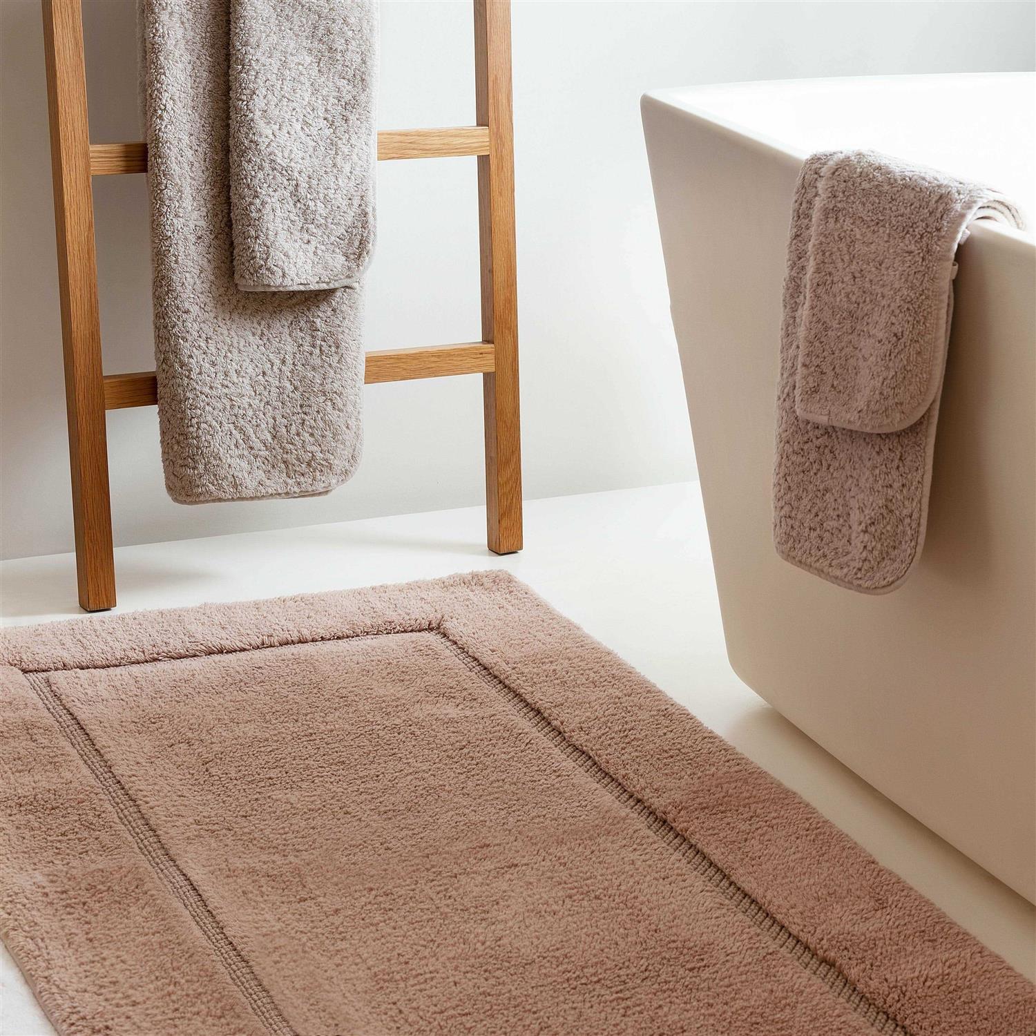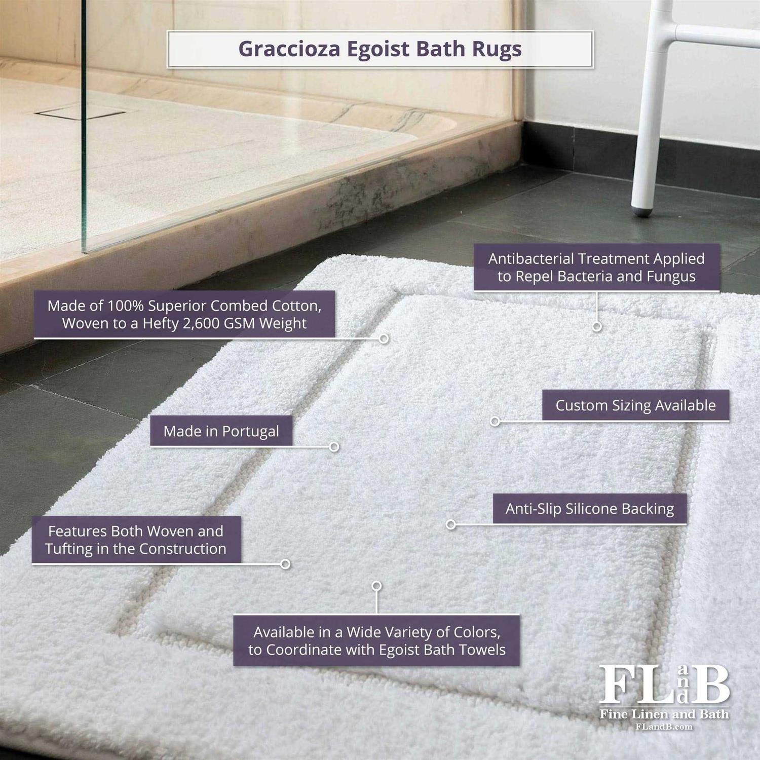 Made with the highest quality cotton fibers, this bath rug provides wonderful softness and incredible absorbency since its first use. The woven base matched the texture of the long tufted pile on the surface creating a level of softness and support unmatched. This bath rug is crafted in Portugal, is extremely smooth for ultimate comfort, and undergoes an antibacterial treatment that repels bacteria and fungi.