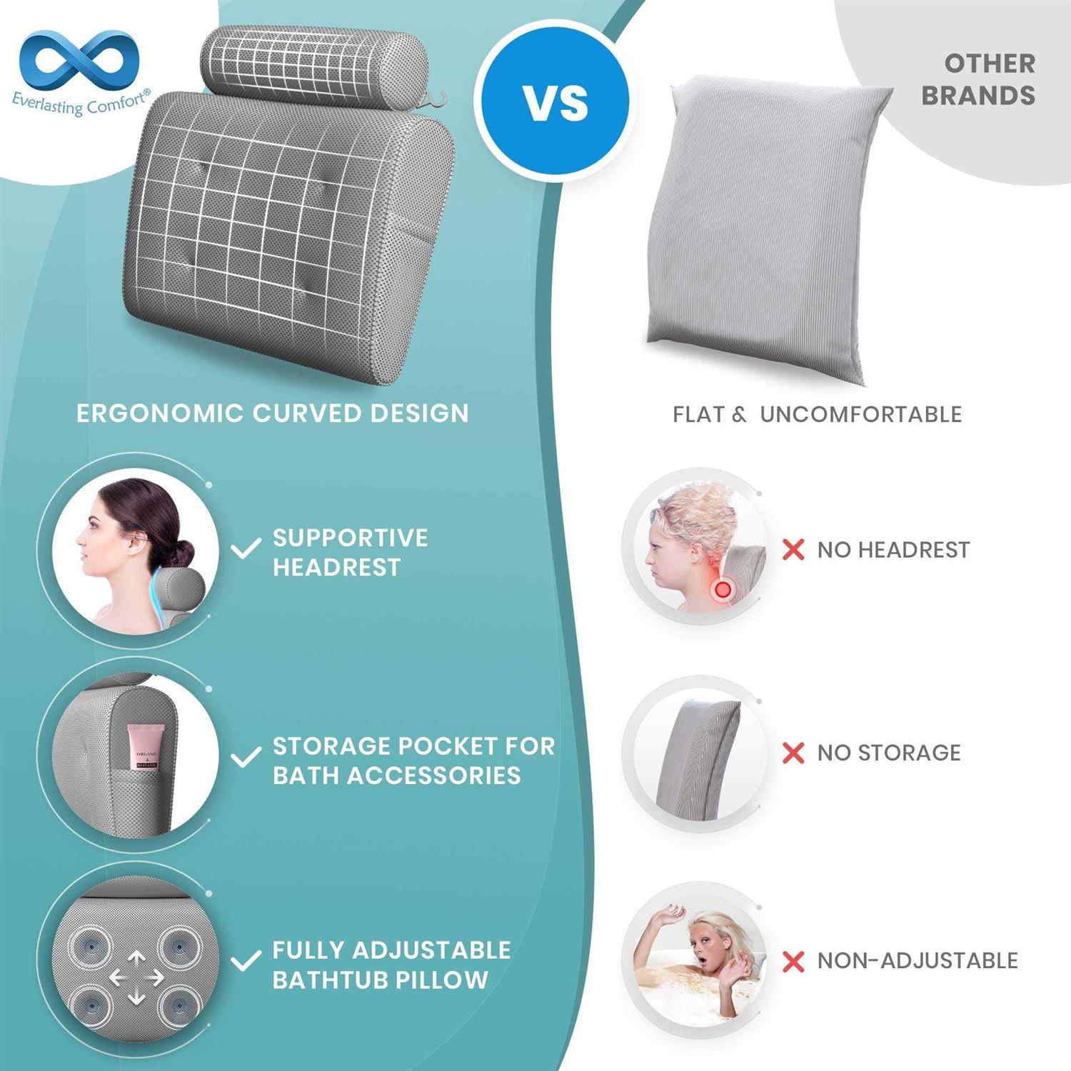 Everlasting Comfort Luxury Bath Pillow Head Neck Back Support Cushion for Bathtub