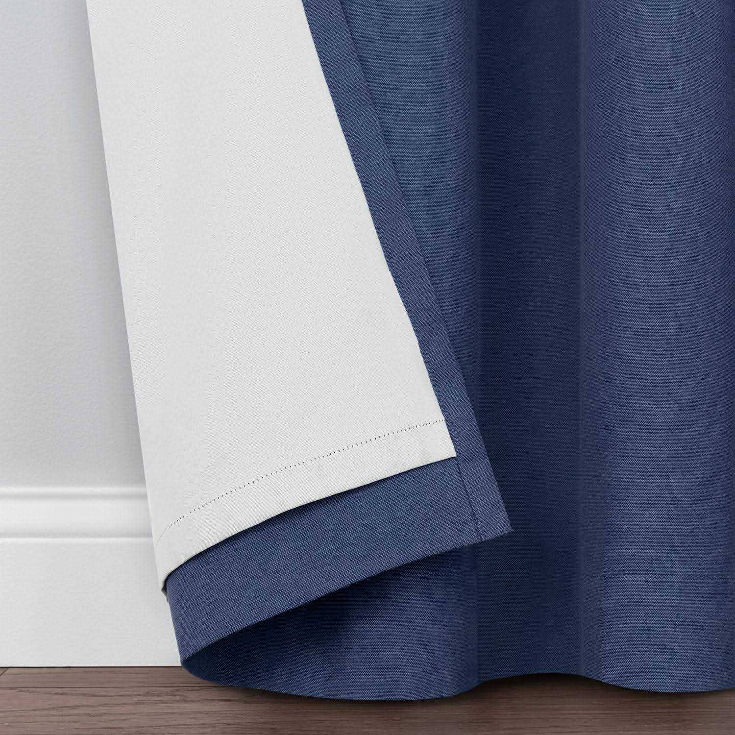 Decorate any window space in your home with the Fieldcrest Davina 100% blackout window curtain panel. This lined grommet chambray panel features 100% blackout properties that also add a touch of style and offers a classic, casual look when decorating your room. Number of Panels: 1 Included: 1 Panel(s) Features: Energy Saving, Noise Reduction Top Construction: Grommet Top Opening: 1 1/2 In Grommet Open Use: Indoor Fiber Content: 53% Cotton, 47% Polyester Fabric Description: Chambray Lining: Lined Lining Material: Polyester Light Filtration: 100% Blackout Care: Machine Wash Curtain Length: 96 Inch Curtain Width: 50 Inch Grommet Color: Nickel Decor Styles: Contemporary Certifications And Listings: Standard 100 by Oeko-Tex Back of Curtain Color: White Country of Origin: Imported