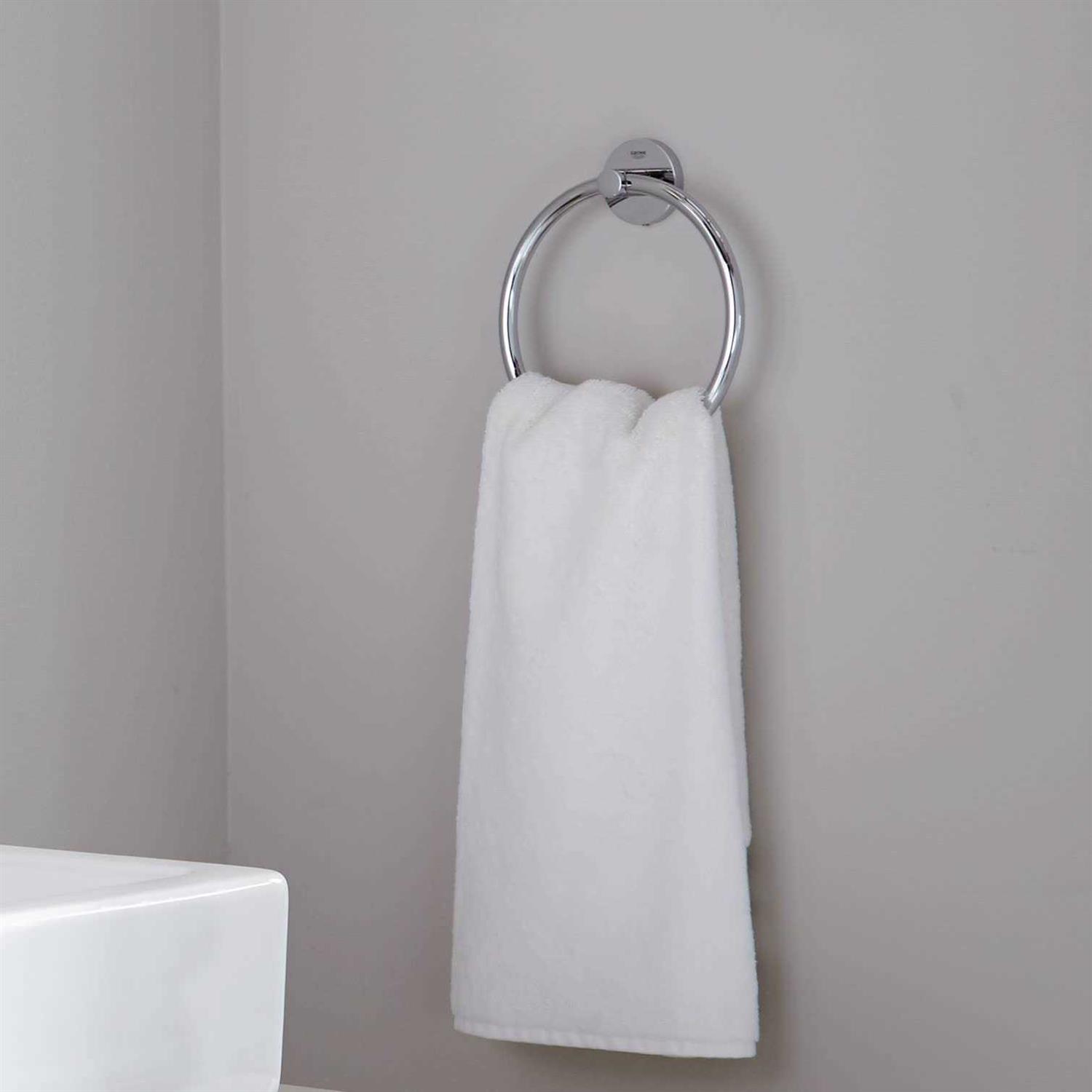 Create a stylish, seamless look in your bathroom with a complete set of clean-lined accessories. The 4-in-1 Grohe accessory set has the key elements you need for finishing a chic, comfortable scheme, including a towel ring, towel rail, robe hook and toilet paper holder. In a dazzling, durable Grohe StarLight chrome finish, this set has everything you need to complement your bathroom, with all matching elements designed to create visual harmony and premium performance.