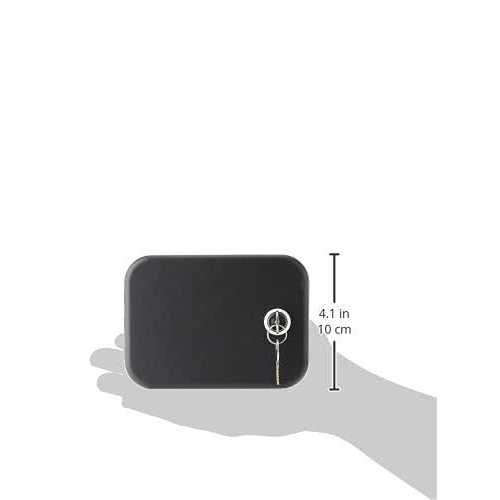 Safe is made from high-quality metal. Its small size is great for portability or for use in a dorm room, nursing home, hotel room, at the beach or park, or in your car. Safe includes two keys, metal tether to attach to furniture or file cabinets for added security and mounting screws for permanent installation.