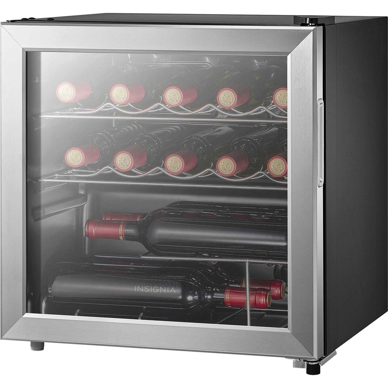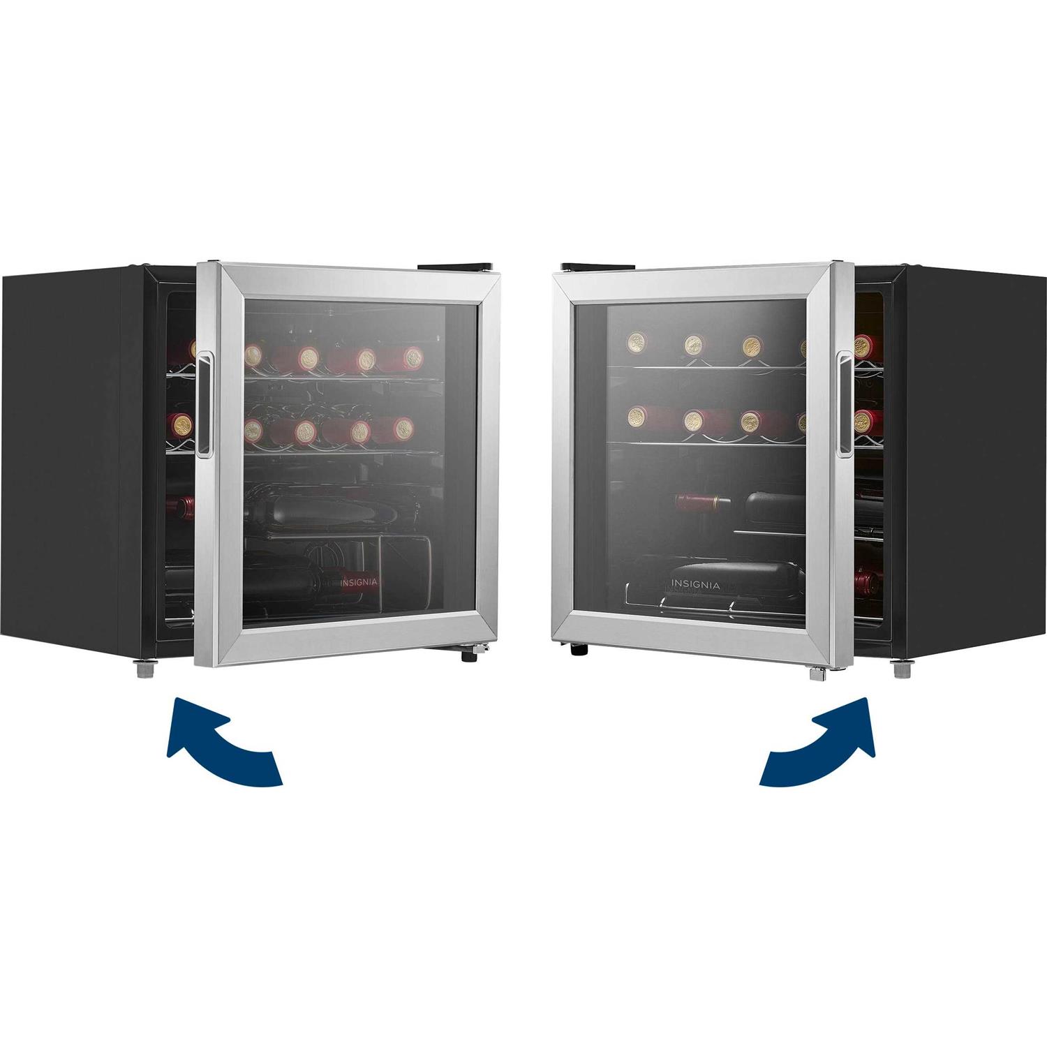Store your favorite bottles of wine and impress your guests with a nice, chilled drink for your next small gathering. The Insignia NS-WC29SS3 14-Bottle Wine Cooler allows you to store your wine and other drinks at an ideal temperature, so they are always ready to drink. Perfect for any gathering, store up to 14 bottles of wine in an organized layout. Moving the party? Position the cooler wherever youd like. With a reversable door and adjustable legs, the cooler doesnt have to stay just in the kitchen. Finally, this appliance adds a modern look to any space with its stainless-steel finish and tempered glass door. Prepare for your next party knowing your drinks will be chilled and ready to let the stress of the day melt away.