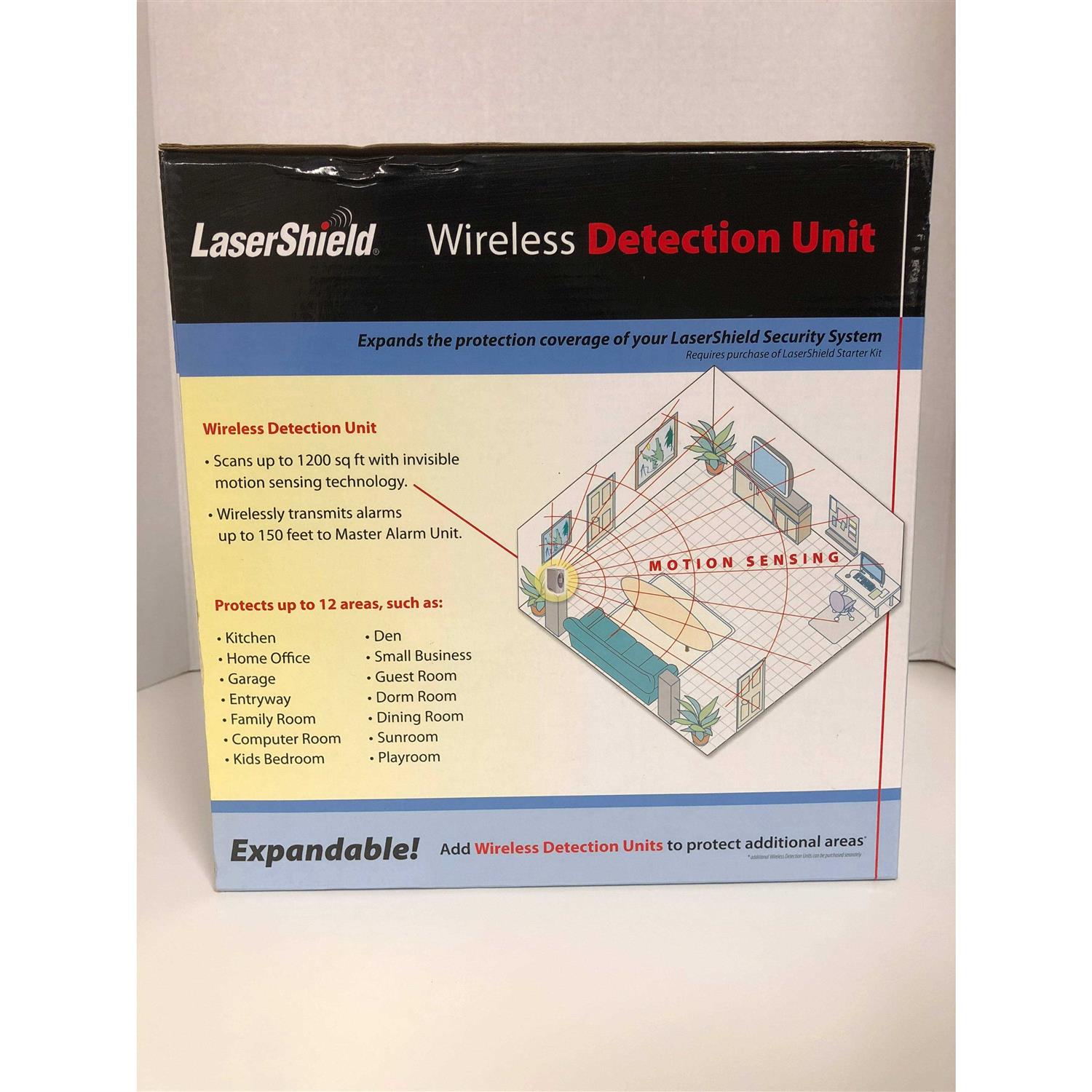 With additional LaserShield Wireless Detection Units you can protect all areas in your home and business. The Wireless Detection Units communicate with the Master Alarm Unit via wireless radio signals and have a range of 150 feet (without obstructions). Each Wireless Detection Unit protects up to 1200 sq. ft.