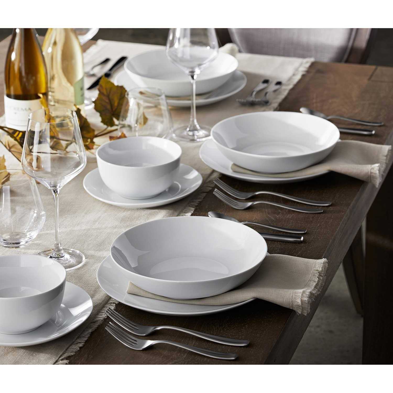 This service for four includes 4 dinner plates, 4 salad plates, 4 cereal bowls and 4 fruit bowls. Ideal for everyday dining, entertaining and buffet tables, this dinnerware set is both durable and stylish. Made of high-quality porcelain, the bright white color makes this set appropriate for any occasion or style. This dinnerware set is also long-lasting and dishwasher safe, plus these dishes are microwave safe too!