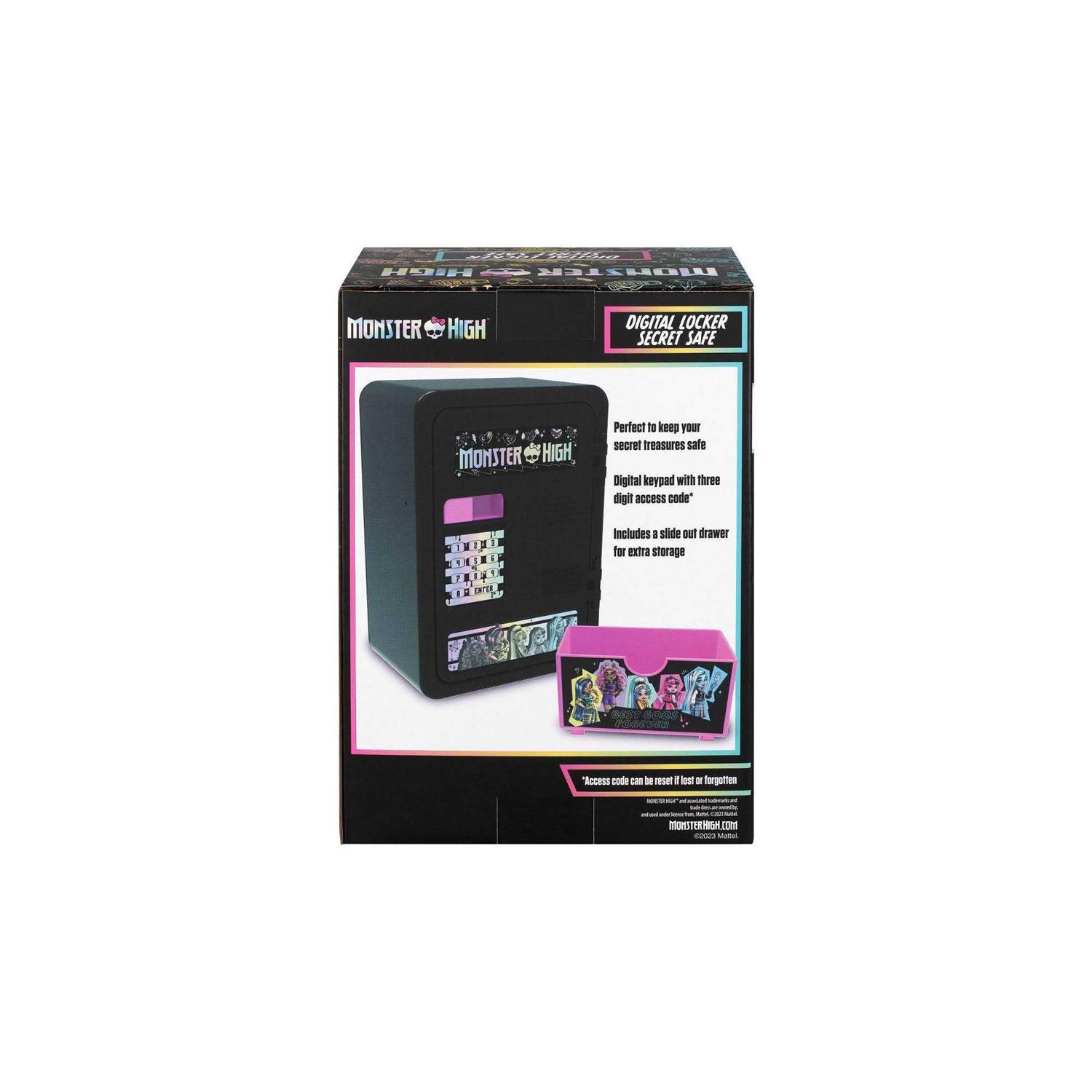 Store all your top-secret treasures with the eKids Monster High Digital Locker! Store money, journals, and other valuables inside this small safe, then create your own secret passcode using the digital keypad! (Passcode can be reset if lost or forgotten.) The built-in removable storage drawer is ideal for hiding smaller items like jewelry, coins, and more. With cool and trendy graphics inspired by Monster High, this mini safe makes a great gift for any fan of the popular series. Requires 3 AA batteries (not included).