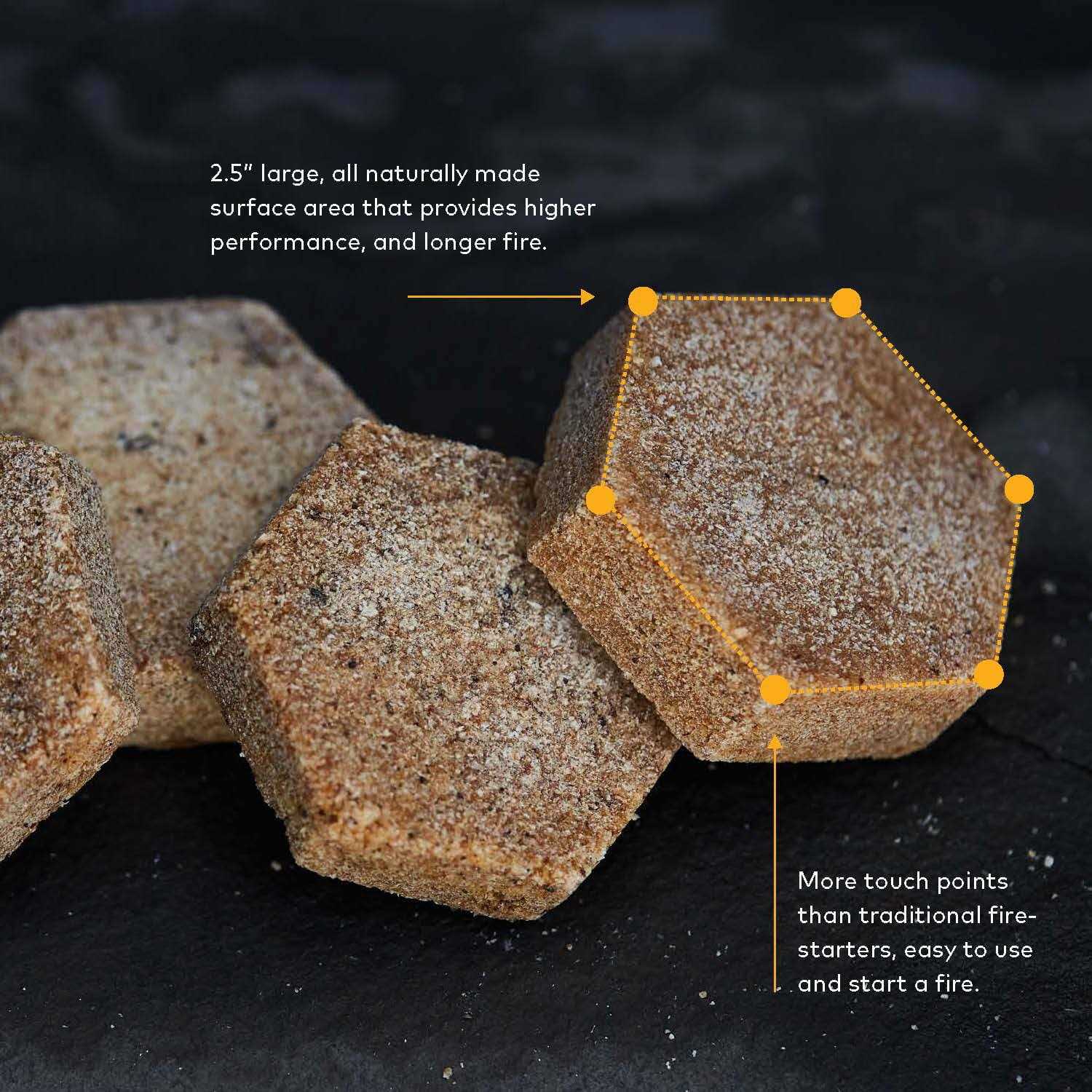 Prime 6 firestarters are thoughtfully designed to get your charcoal going or your large log burning quickly. With only 2 ingredients, wax and sawdust, they burn clean and with an intense flame for up to 40 minutes. Each piece can be split in half so you get more fires per pack. Plus, were partnering with One Tree Planted, so that every pack sold helps plant trees and share the warmth for generations to come.