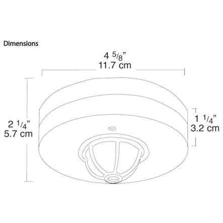 Super ceiling sensor has three detectors for triple overlapping coverage to catch small movements LED testing and operation Indicator Relay and sensor all-in-one unit reduces installation costs Offers parallel wiring Negligible power consumption Rab Smart Switch Occupancy sensor in white color, has response time adjustment of 10 secs to 5 mins. It has sensing distance of 2152 Sq-ft and 360-degree viewing angle. Sensor requires 16 Amps current and 120 Volts voltage for operation. Sensor for indoor application is compatible with program start ballasts. Sensor measures 4-5/8 Inch Dia x 2-1/4 Inch. Sensor is ceiling mounted at height of 9 ft. Occupancy sensor is UL listed.