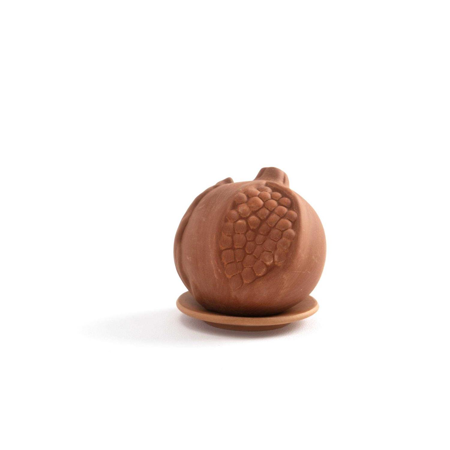 Melograno in Terracotta A reproduction of the pomegranate fruit, handcrafted in terracotta. It is soaked in Officina Profumo Farmaceutica di Santa Maria Novella’s Melograno fragrance which is released slowly in the air. The porousness of the terracotta allows the fragrance to be slowly released over time. Place on the plate provided in the box in order to avoid direct contact with all other surfaces. Made in Florence. Finished by hand and packaged with care.
