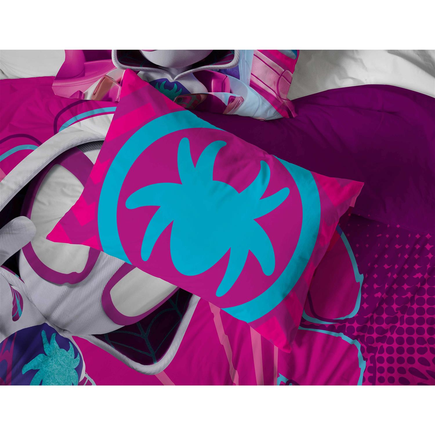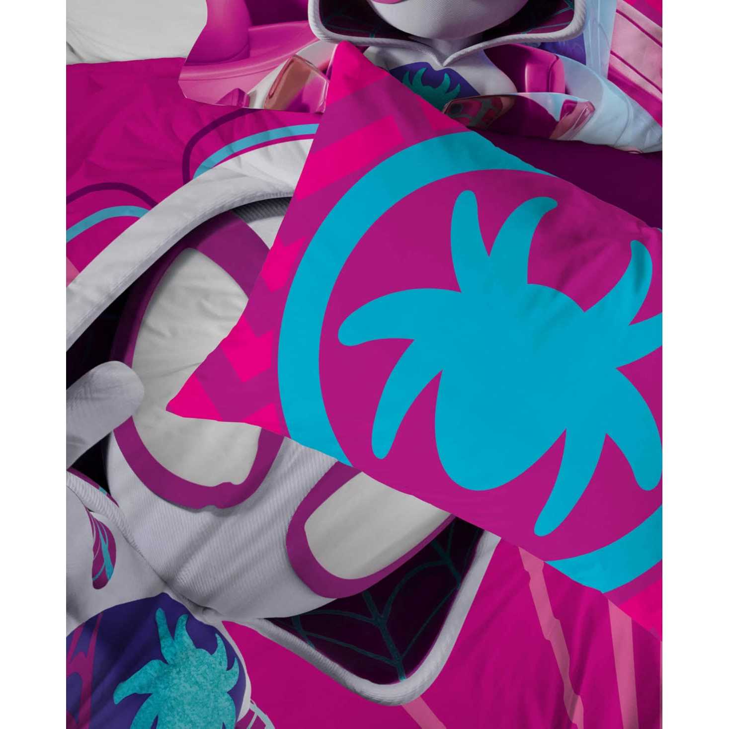 Marvel Sink into your spidey senses with the Ghost Gwen twin bed set. Featuring Ghost Gwen herself and decorative accents, this bed set includes a comforter, a flat sheet, a fitted sheet, one sham and one pillowcase. Easy care, machine wash cold, tumble dry low.